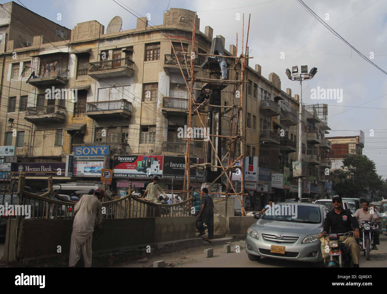 Laborers Are Busy In Reconstruction Of Monument Which Destroyed Due To Negligence Of Authorities Nearby Regal Chowk Of Saddar In Karachi On Friday August 12 2016 Stock Photo Alamy